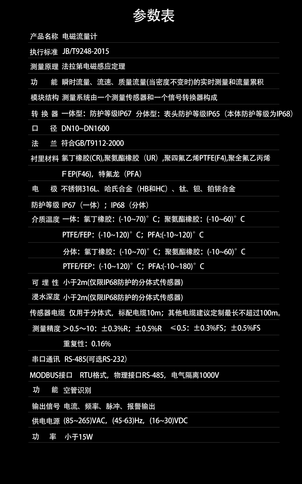 簡要描述:電磁流量計僅適用測量具有導(dǎo)電性的液體或液固兩相流體的瞬時流量,并具有流量累積功能。