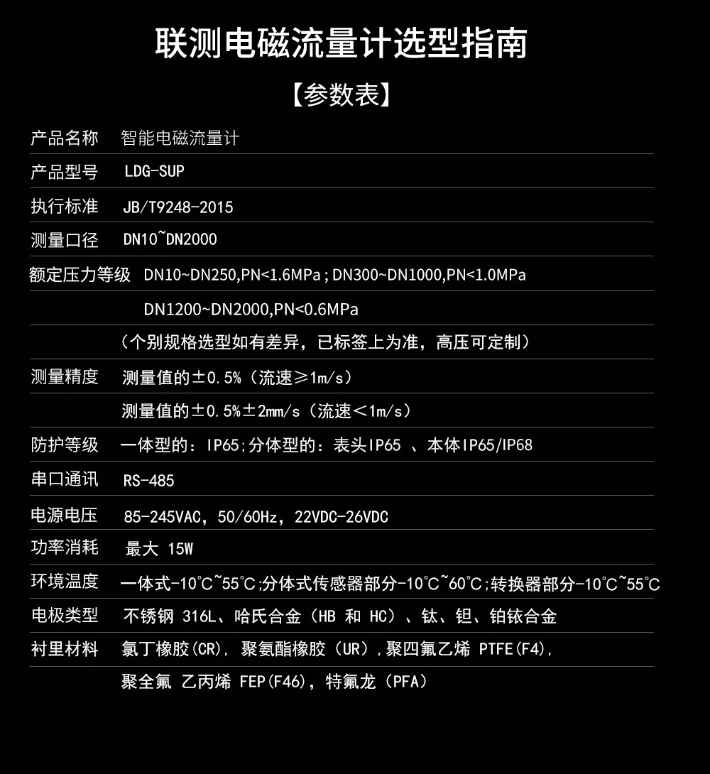 簡要描述:聯測儀表LDG電磁流量計適用于化工助劑、海綿城市、給水排水、水利灌溉、水處理、污水處理(環保污水控制、化工污水、電鍍污水)、造紙漿液(紙漿)、泥漿、醫藥原料、食品等工農業的生產公司過程流量測量和控制,標配485通訊功能。