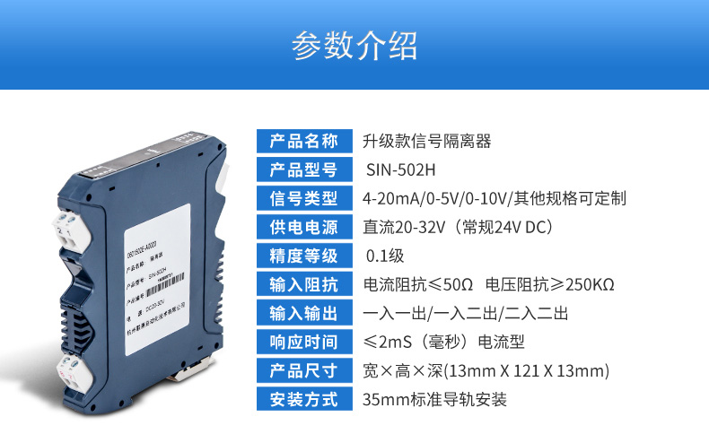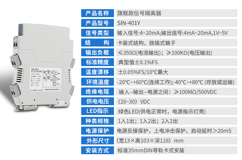簡要描述:信號隔離器是一種信號隔離裝置,將輸入單路或雙路電流或電壓信號,變送輸出隔離的單路或雙路線性的電流或電壓信號,并提高輸入、輸出、電源之間的電氣隔離性能。