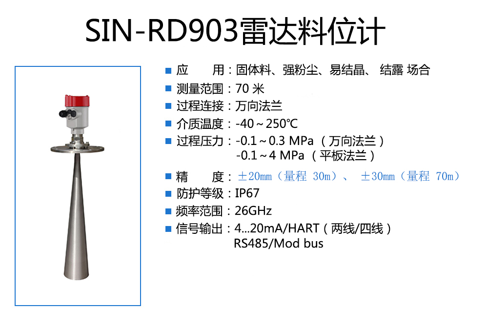 當前位置:首頁 > 雷達液位計 > 聯測_SIN-RD903雷達料位計_適用于固體料 結露 _