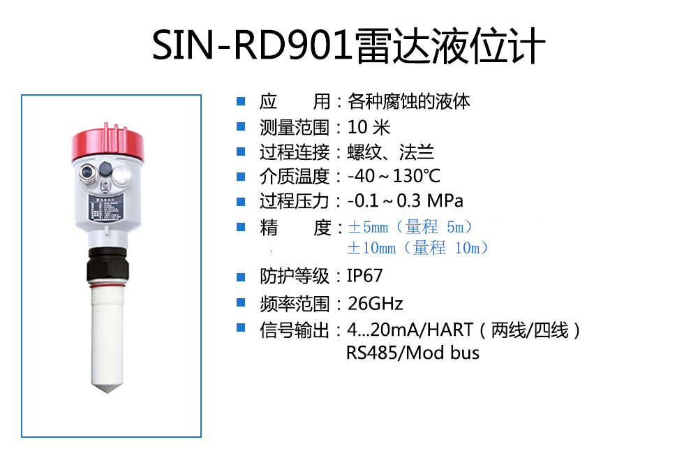 當前位置:首頁 > 雷達液位計 > 聯測_SIN-RD901雷達液位計_適用于各種腐蝕的液體_