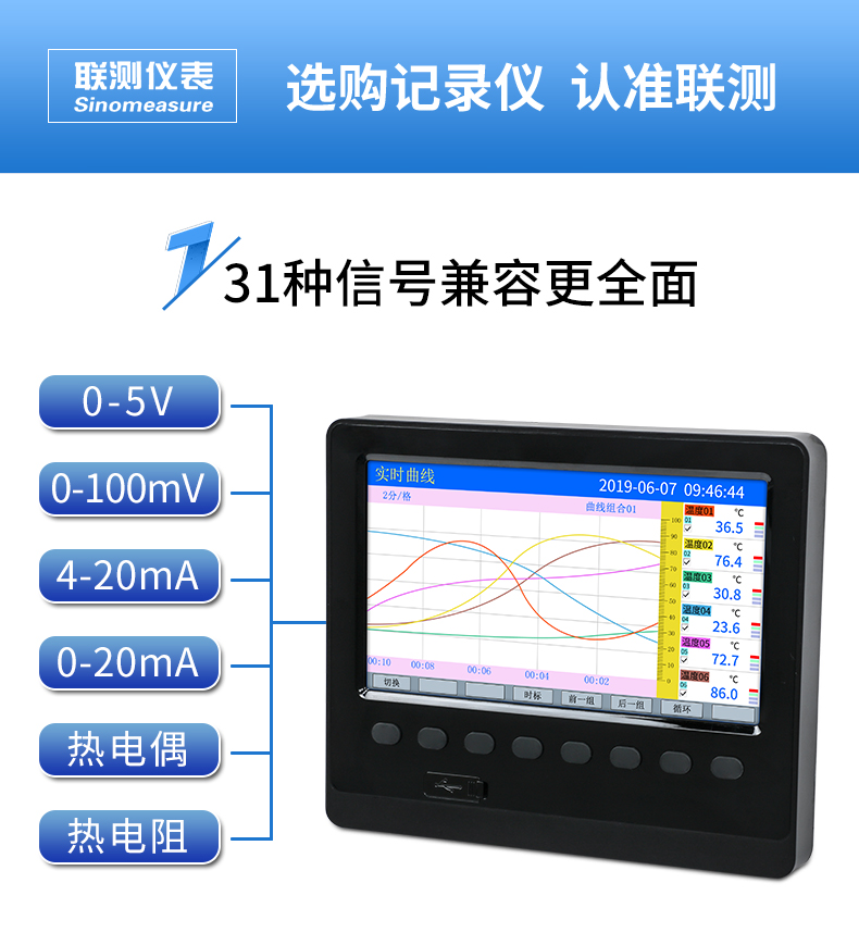 簡要描述:工業無紙記錄儀,6 通道萬能輸入,160*80 面板尺寸。可輸入電流、電壓、熱電偶、熱電阻和頻率等工業信號,以數值、棒和曲線形式實時顯示數據,定時將數據存儲于儀表內部電子存儲器,可通過 USB 設備快速轉存歷史數據。